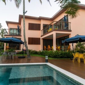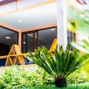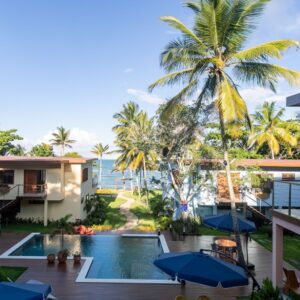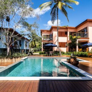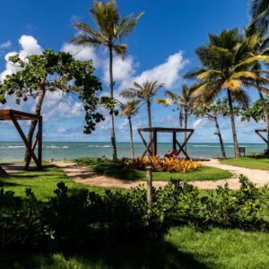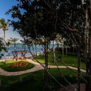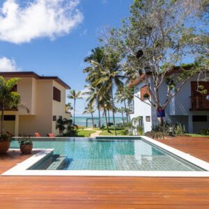 O projeto paisagístico deste condomínio residencial à beira-mar em Arraial d’Ajuda/BA foi cuidadosamente elaborado para integrar o paisagismo à natureza exuberante do entorno.